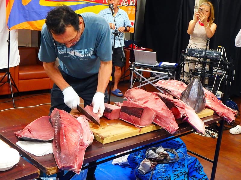 こちらも毎年恒例のフラダンスに始まり、マグロの解体ショー、そしてマグロ丼と目にお腹にとても良い時間を過ごしました。